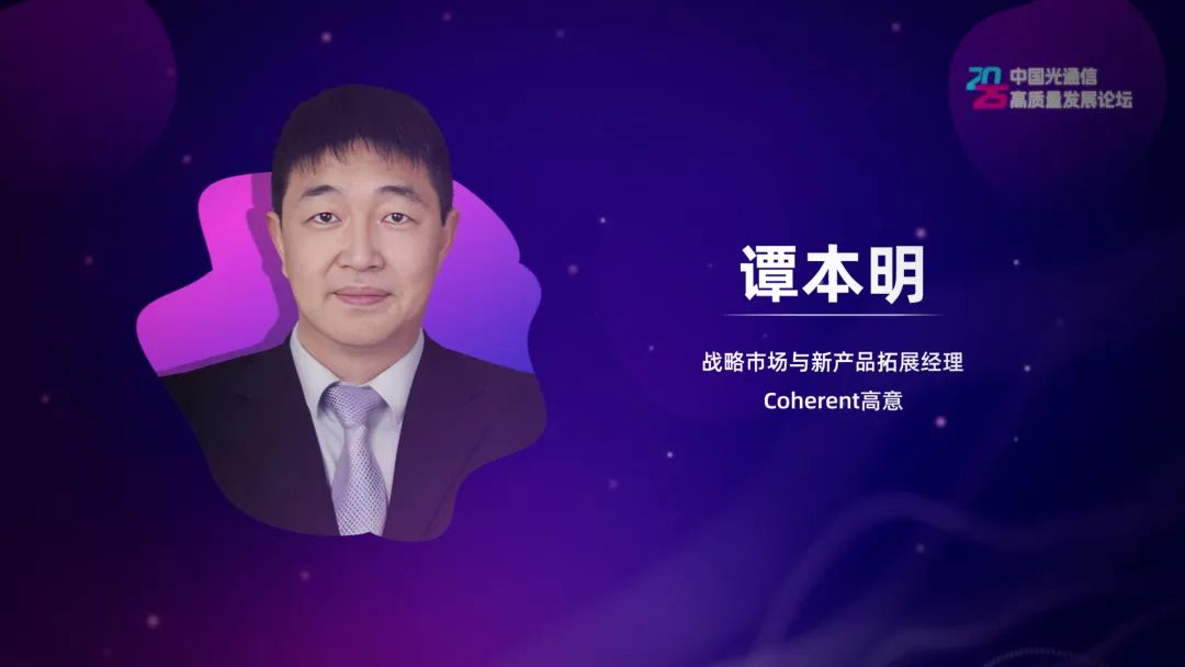 Coherent高意是数通光模块高速发展的代表性企业之一。在研讨会上,高意战略市场与新产品拓展经理谭本明发表演讲指出,AI正在重构人类社会的方方面面,已成为数字化转型的核心引擎。AI训练和推理需要消耗大量的算力以及强大的运力保障,光网络以及核心的光模块扮演着重要角色,未来与AI相关的光模块销售额占比将继续提升。