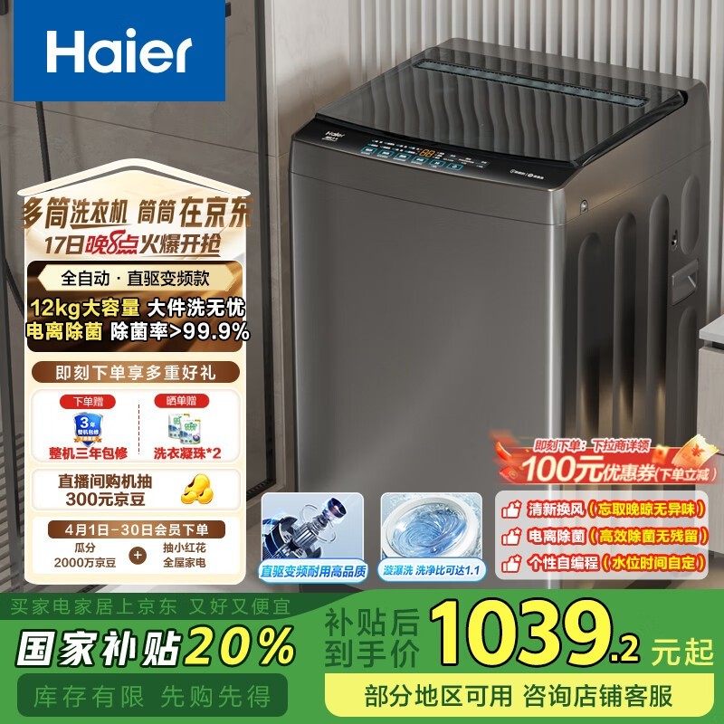 海尔EB120B53Mate1变频波轮洗衣机12kg大容量仅938元
