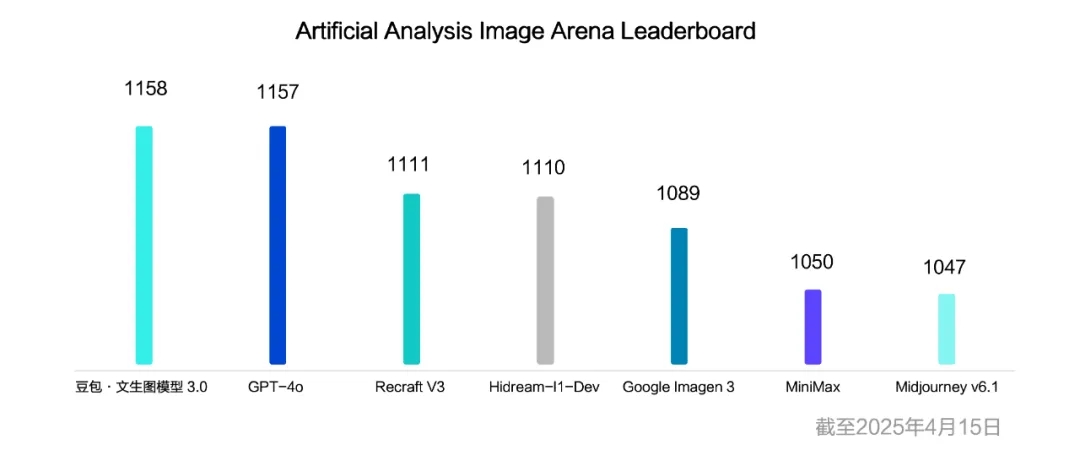 在最新的文生图领域权威榜单 Artificial Analysis 竞技场中,豆包·文生图3.0模型已超越业界诸多主流模型,排名全球第一梯队。