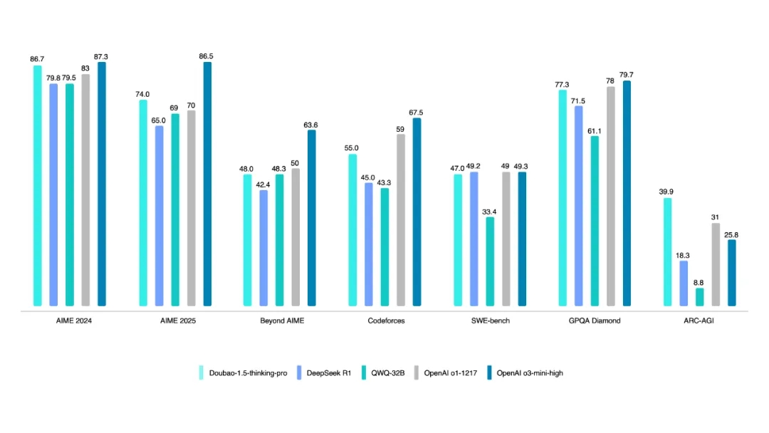 全新发布的豆包1.5·深度思考模型,在数学、代码、科学等专业领域推理任务中表现出色,已经达到或接近全球第一梯队水平;在创意写作等非推理任务中,模型也展示出优秀的泛化能力,能够胜任更广泛和复杂的使用场景。