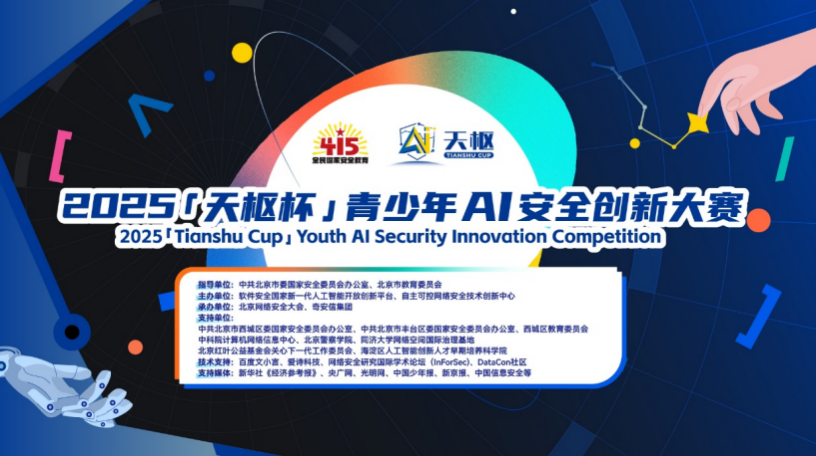 4月17日,2025“天枢杯”青少年AI安全创新大赛在京正式启动。作为“4·15”全民国家安全教育日的主题活动之一,本次大赛由中共北京市委国家安全委员会办公室、北京市教育委员会指导,软件安全国家新一代人工智能开放创新平台、自主可控网络安全技术创新中心主办,北京网络安全大会、奇安信集团承办,汇聚顶尖科研机构与行业龙头,通过“以赛代练、以练促学”的创新模式,激发青少年在人工智能安全领域的创造力,为国家人工智能安全发展储备未来栋梁。