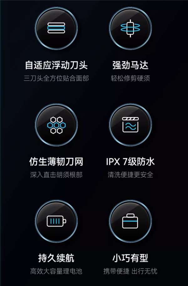 仿生精钢薄韧刀网,深入胡须根部。精准切割,更彻底,长短胡须一扫而净。