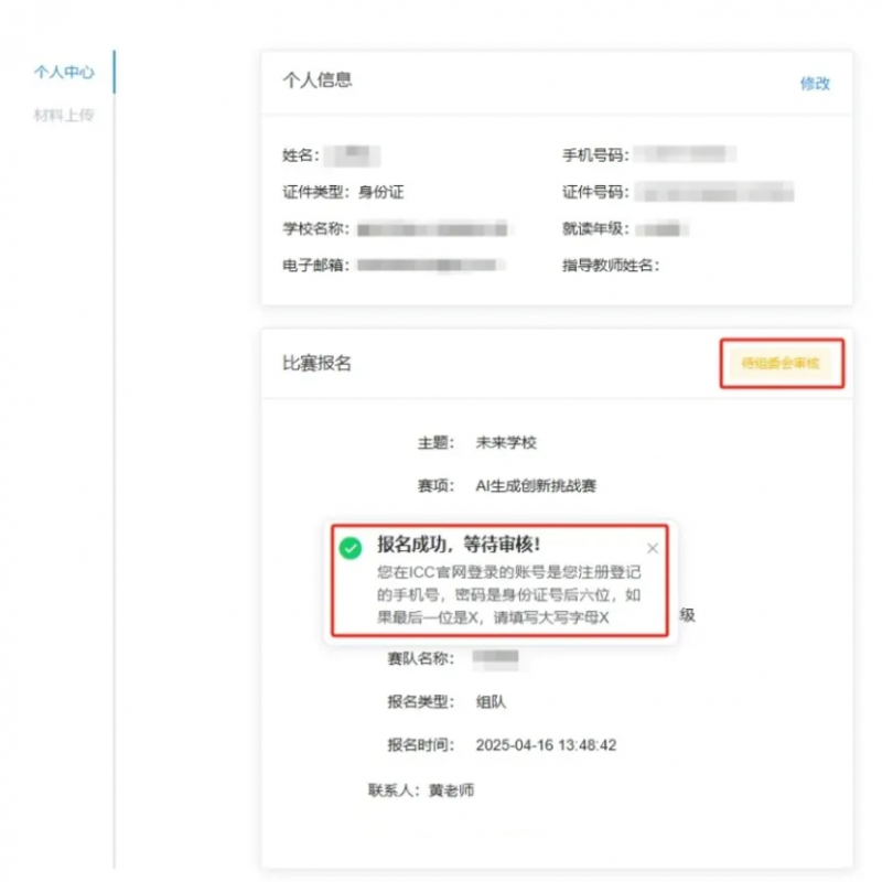 接下来需要等待组委会审核