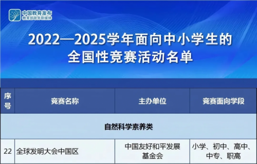 为响应国家及教育部相关精神,教育部白名单竞赛《全球发明大会中国区竞赛活动》在未来学校方向上新设《AI生成创新挑战赛》,成为学生具备AIGC(新一代人工智能)特长的重要证明,也是青少年AIGC教育领域最权威的竞赛,为引导AI教育和筛选AI人才做出贡献。