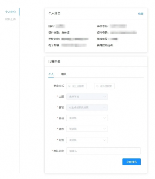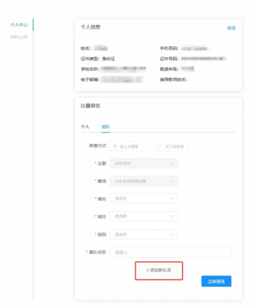可以选择【个人报名】或【组队报名】