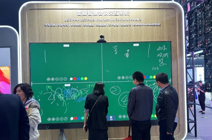 展会展出的雷曼智慧会议交互系统(简称“雷曼会议一体机”)和雷曼超高清家庭巨幕墙,分别应对工作会议与日常生活的应用升级。