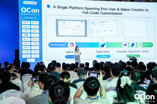 在技术实践层面,她系统介绍了微软云平台在Agentic AI开发方面的完整能力栈,包括Copilot Studio的低代码开发环境、多模态检索引擎、函数工具链支持等,帮助企业灵活构建基于自身数据与业务流程的智能体系统。同时,她展示了AI智能体在员工入职、供应链管理、电路设计自动校验等真实场景中的应用成效。