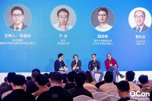 大会首日,在主论坛的压轴圆桌环节中,围绕“DeepSeek 时代的 AI 技术与应用生态”主题,新浪微博首席科学家及新技术研发负责人张俊林担任主持,与快手高级副总裁于冰、清华大学副研究员/无问芯穹联合创始人颜深根 、Coupang 研发 VP 郭东白等三位嘉宾展开了深入交流。