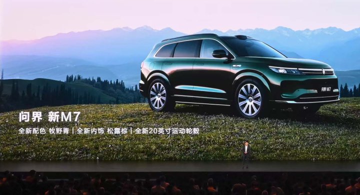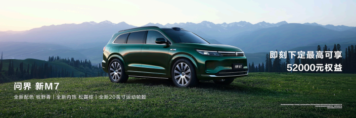 问界 新M7正式推出全新车色“牧野青”, 新增“松露棕”内饰及全新20英寸十辐运动轮毂,以自然美学与科技质感融合的设计理念,为消费者带来更丰富的选择。问界 新M7建议零售价24.98万元起,即日起至2025年5月6日,购车可享至高5.2万元限时购车权益。