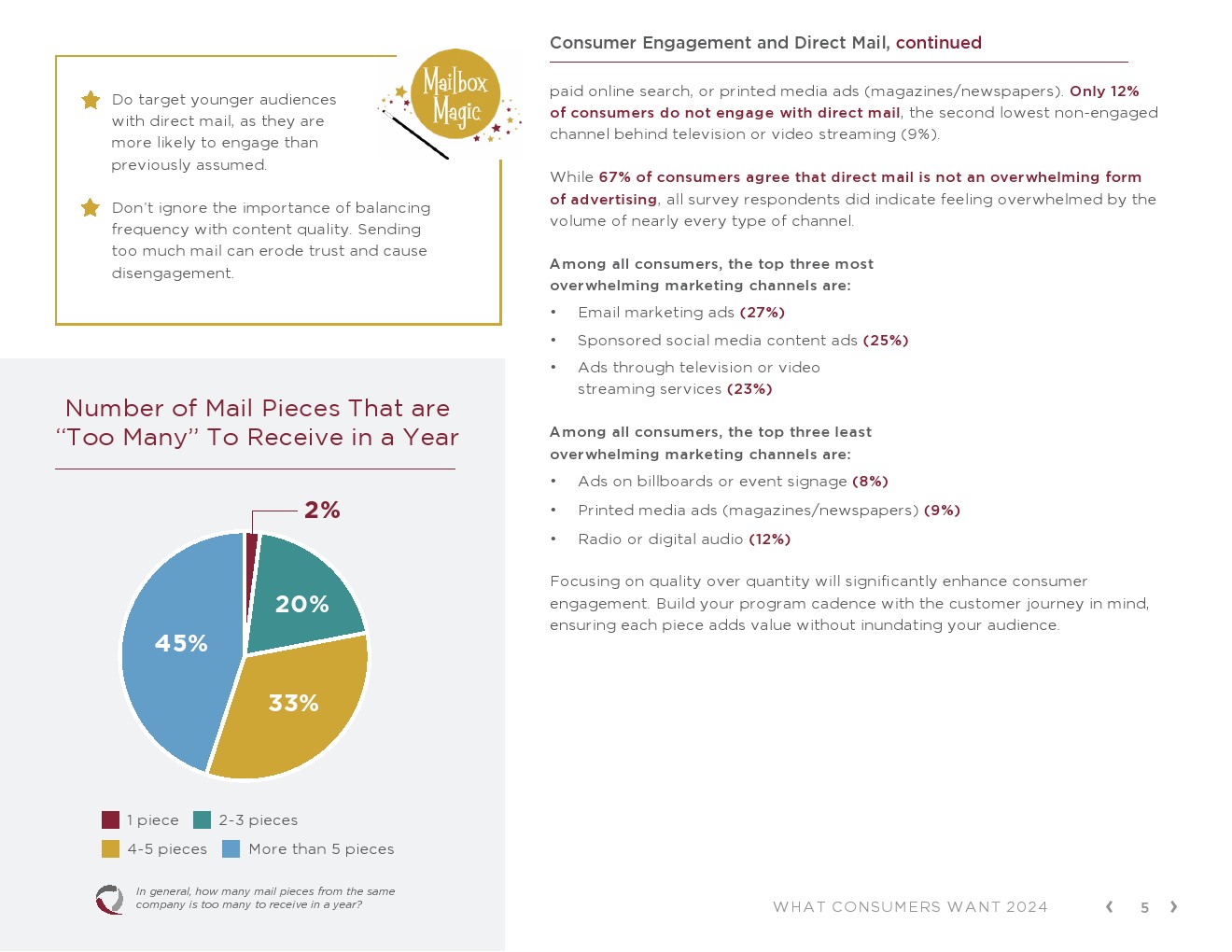 虽然67%的消费者同意直邮不是一种压倒性的广告形式,但所有的调查受访者都表示,几乎每种渠道的数量都让他们感到不知所措。
