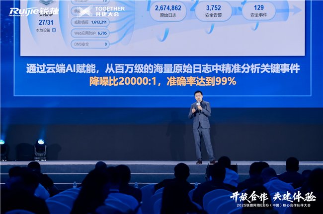 近日,2025锐捷网络EBG(中国)核心伙伴大会在苏州圆满落幕。来自全国2000+合作伙伴齐聚苏州,共同见证这场盛会的举办。会上,锐捷网络发布了七大战略产品解决方案。其中网络安全产品事业部产品市场总监沈世海发布了“打造网络+安全一体化的超预期体验”的主题报告。报告围绕让“让渠道交付更简单、让渠道服务更轻松”全面展开,旨在为合作伙伴打造从交付到运维全生命周期的超预期体验。
