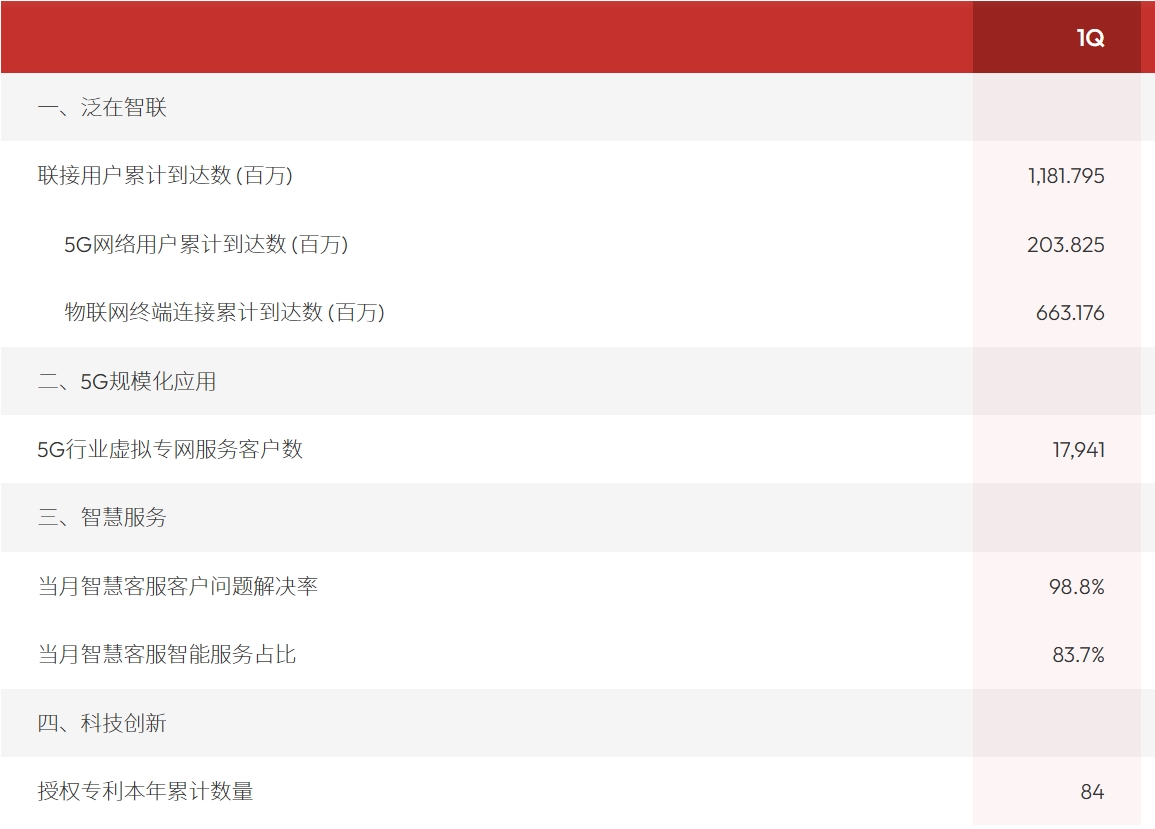 其中,5G网络用户累计到达数为20,382.5万户,值得注意的是,中国联通表示,为更好反映本公司 5G 发展情况,公司将定期披露的 5G 套餐用户数更新为 5G网络用户数。5G 网络用户为当期使用过 5G 网络的移动用户。