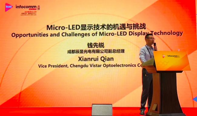 4月16日,辰显光电携多款全球首创Micro-LED显示产品强势亮相北京 InfoComm China 2025,成为全场焦点。公司副总经理钱先锐博士受邀出席同期举行的高峰会议,以《Micro-LED显示技术的机遇与挑战 》为题发表主题演讲。