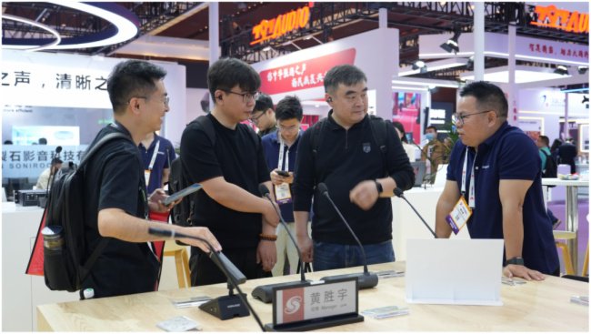 展会期间,VISSONIC议朗的会议系统及视频信号处理产品成为了展会的一大亮点。其中网络会议扩声系统,具备AI降噪算法还原纯净人声,即使模拟机场环境噪音下,语音清晰度仍有大幅度提升,使在现场的海内外客户惊叹。另外,视频矩阵墙凭借其4K60无损传输技术,以及多路超高清信号实时调度,画面零延迟、无撕裂,获得不少现场客户的认可。