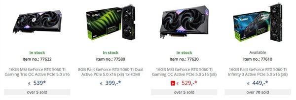 更好的消息是,RTX 5060 Ti成为第一款维持库存和原价、没有缺货和溢价的RTX 50系列新卡,在欧洲依然是16GB 449欧元、8GB 399欧元。