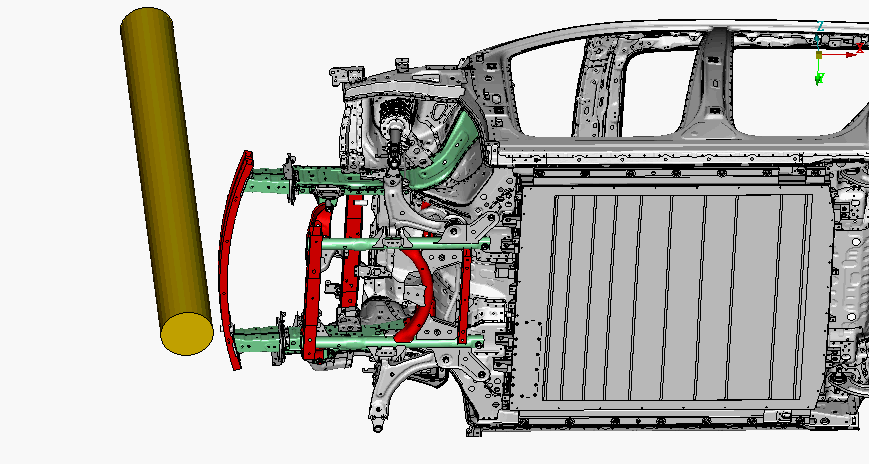 正面中心柱碰撞测试主要模拟车辆高速撞击柱状物体(如电线杆、树木)的情形。与传统撞击测试不同,该测试的碰撞面积仅为 25.4cm 直径,动能集中于单点,且避开车身纵梁保护结构,对新能源车型的电驱系统防护提出更高要求。