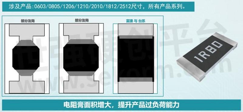 电阻膏是电阻的核心部分,其面积的大小直接影响电阻的性能。富捷电阻通过增大电阻膏面积,进一步提升了产品的过负荷能力。具体来说,电阻层尺寸为1×1.7mm,这种设计不仅保证了电阻的电气性能,还提高了其在高负荷条件下的可靠性。在实际应用中,这意味着电阻可以在短时间内承受更高的电压和电流冲击,而不会出现性能下降或损坏的情况。这对于一些需要高可靠性的应用场景,如汽车电子和工业控制等领域,具有重要的实际意义。