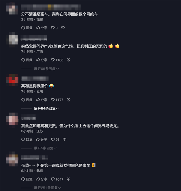 快科技4月18日消息,50多万的问界M9和300多万的宾利欧陆比起来谁更豪华?或许这并不是道难题,但在一条视频的评论区,情况有些出人意料。