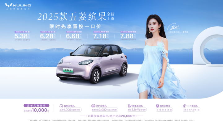 4月19日,2025款五菱缤果于郑州音乐派对上市,限时置换价5.38万起,代言人孟子义化身首位车主。新车提供410km续航、四气囊及17处储物空间等升级,叠加万元礼遇开启城市出行新体验。