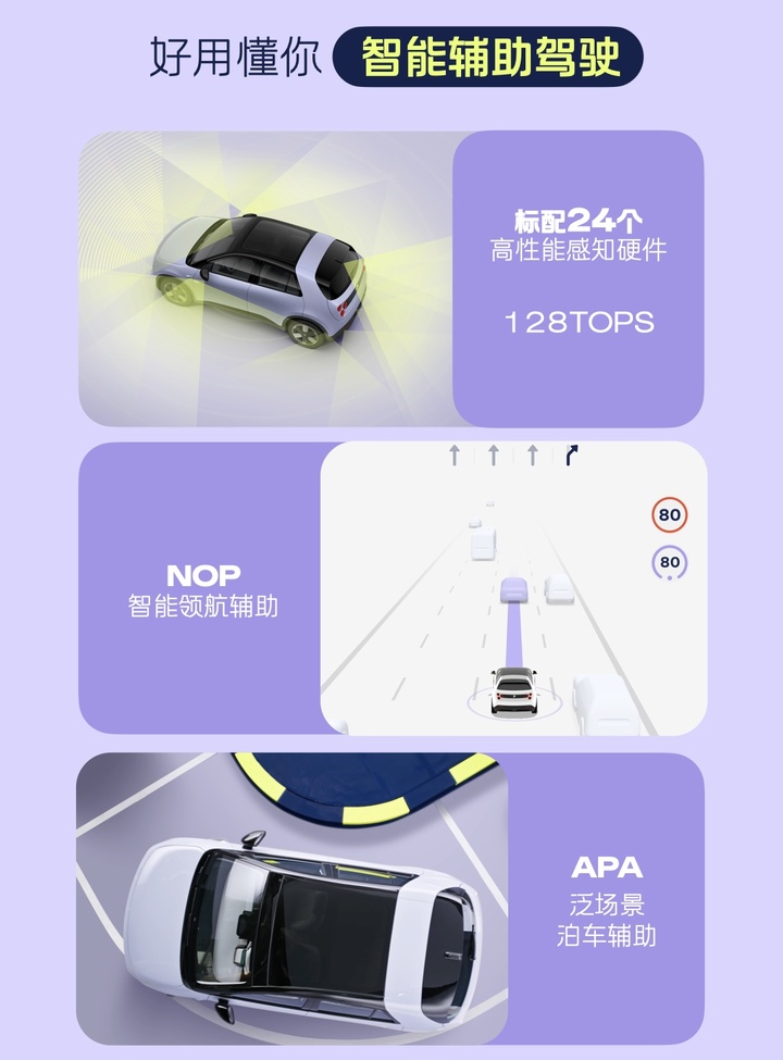 - 地平线征程 5 智驾芯片,128Tops 算力,支持 ACC 和高快 NOP 功能。