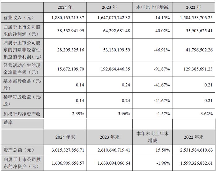 4月20日,中山联合光电科技股份有限公司发布2024 年年度报告。报告期内,公司实现营业收入18.80亿元,较上年同期增长14.15%;实现归母净利润3856.29万元,较上年同期下降40.02%;扣非净利润为2820.53万元,较上年同期下降46.91%;实现经营性现金流量净额1567.22万元。