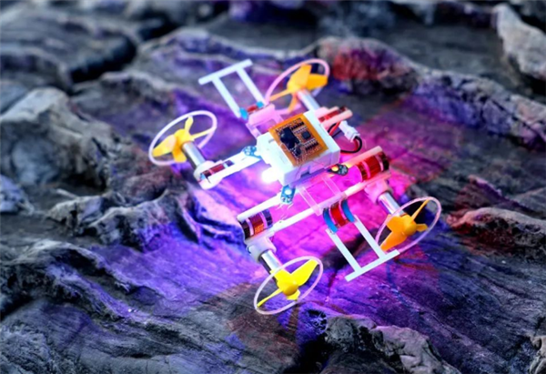 研究团队采用"搭积木"式的设计方法,利用这种新型驱动器成功研制出目前世界上最小、最轻的微型无线陆空两栖机器人。