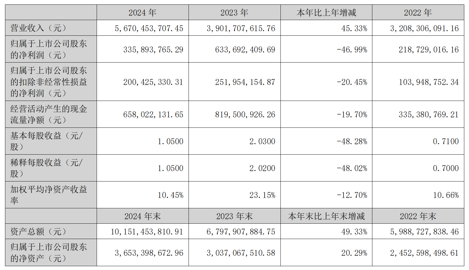 【亿邦原创】日前,跨境电商企业乐歌股份(以下简称:乐歌)发布了2024年年度报告。数据显示,2024年乐歌实现营业收入56.7亿元,较上年同期增长45.33%;归属于上市公司股东的净利润为3.36亿元,较上年同期下降46.99%;归属于上市公司股东的扣非净利润为2亿元,较上年同期下降20.45%。