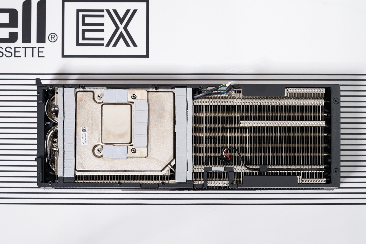 索泰RTX5080 天启OC搭载了冰芯2.0散热系统。散热模组上有一块大面积的VC均热板为GPU核心及周边显存等元件进行导热,同时配有8条8mm的冰脉3.0复合热管,周围供电模块则是通过中框来向散热器进行导热,显存和供电模块都有专门的导热垫填充空隙。这个压铸成型的中框也是索泰特地为天启加入的,具有较强的抗扭和抗压能力,防止显卡PCB变形。