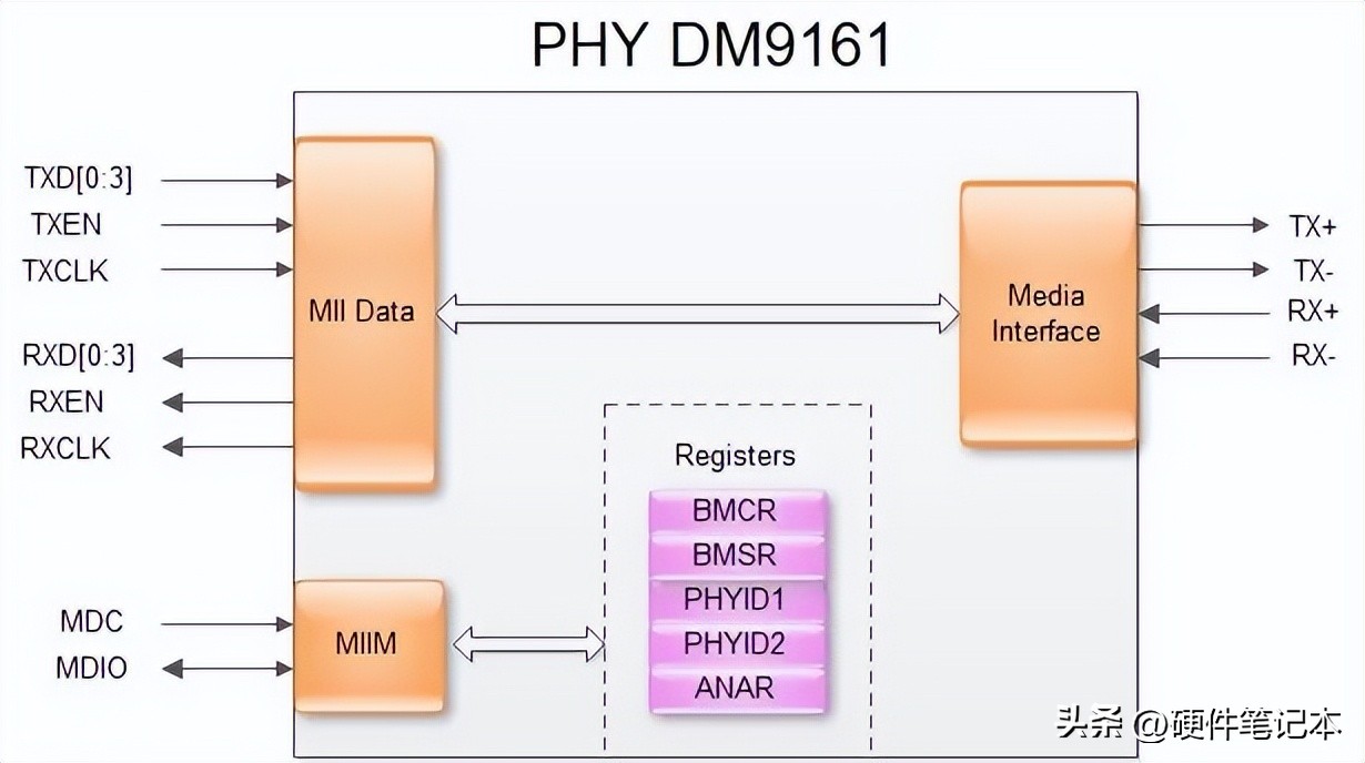 PHY 里面的部分寄存器是 IEEE 定义的,这样PHY把自己的目前的状态反映到寄存器里面。