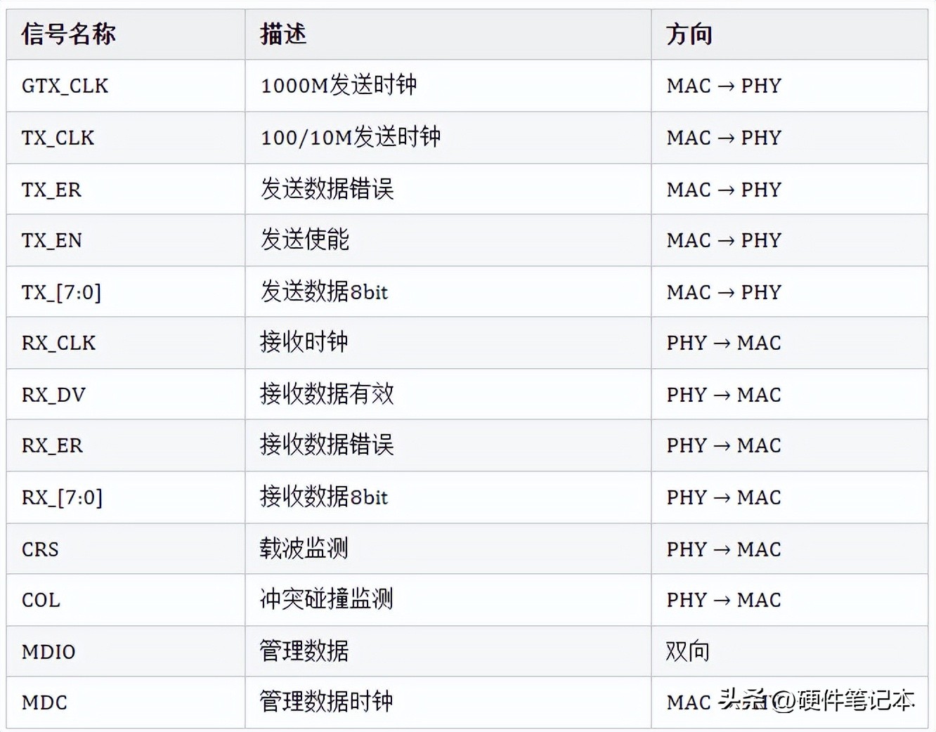 RX_ER(receive error):RX_ER 同步于 RX_CLK,其在 RX 通道中的作用类似于 TX_ER 对于 TX 通道数据传输的影响。