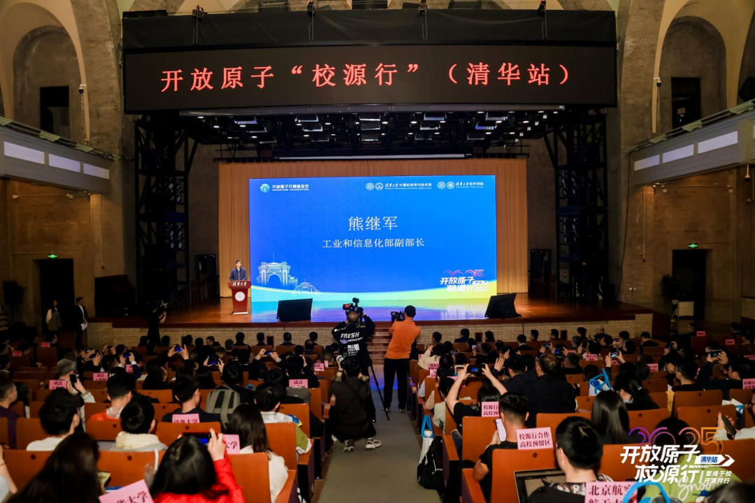 4月18日,由开放原子开源基金会、清华大学计算机科学与技术系、清华大学软件学院主办的开放原子“校源行”(清华站)在清华大学成功举办。工业和信息化部、清华大学领导,教育部高等教育司、中国科协青少年科技中心,以及院士专家、地方工信部门、高校、头部科技企业代表等500余人共话开源生态,推进开源教育。会上正式发布“开放原子校源行2.0”和“以贡献为导向的开源人才评价机制”并正式成立试点小组。工业和信息化部副部长熊继军,清华大学党委常委、副校长曾嵘出席活动并致辞,中国工程院院士孙家广作主题报告,开放原子开源基金会理事长程晓明作成果发布。