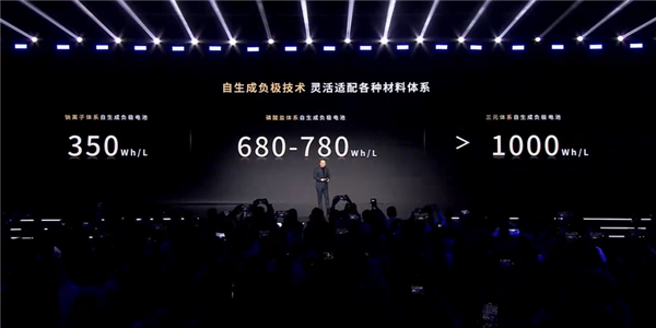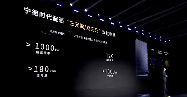 3、三元铁/双三元电池(三元电池+磷酸铁锂/三元自生成负极电池),输出功率1000kW,12C充电速度,可以给3米轴距的车配180kWh的电量,纯电续航1500km。