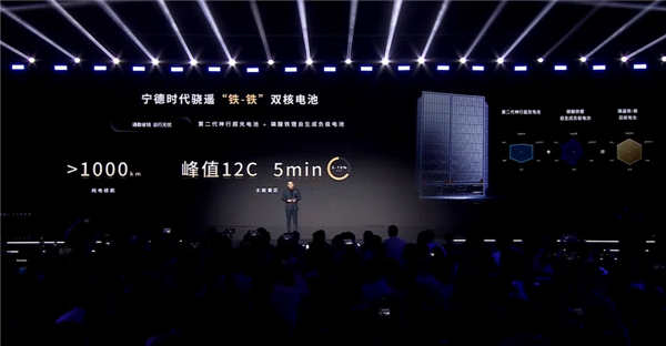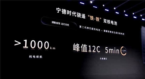 2、铁-铁双核电池(第二代神行超充电池+磷酸铁锂自生成负极电池),峰值12C充电功率,纯电续航超1000km。