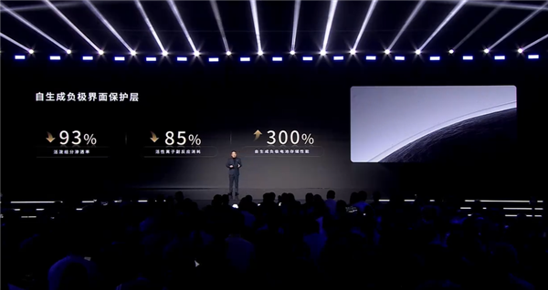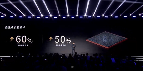 在增程能量区宁德时代首创自生成负极电池技术,不再使用传统的石墨负极材料,这样就可以在同样的电池包空间内,配置更多电量,还能大幅提升能量密度。