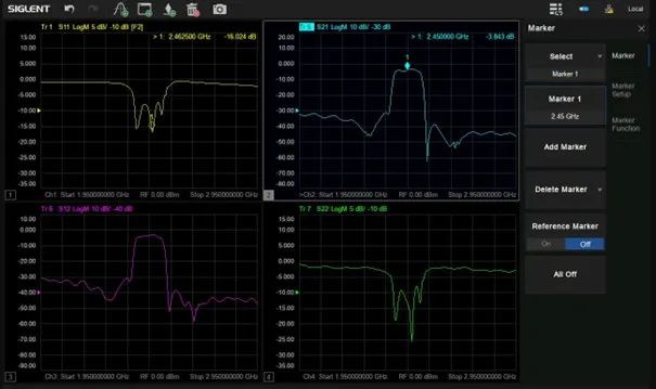 SNA5000X-E系列具备12.1英寸触摸屏,支持多窗口显示,工程师可同时观察多个S参数,数据对比一目了然。同时,SNA5000X-E也支持包括群时延、史密斯图等多种数据显示格式,支持高频测量与滤波器特性一键分析,快速获取插入损耗、带宽等关键指标,还支持公式输入功能,让每一次测试都更便捷。