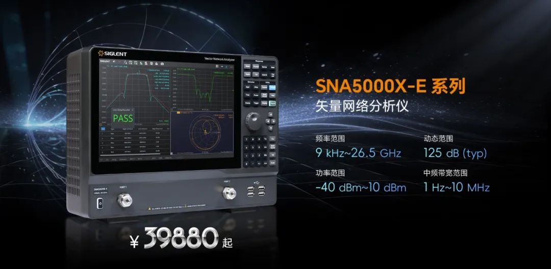 2025年4月18日,鼎阳科技正式推出全新SNA5000X-E系列矢量网络分析仪。该产品具备9 kHz至26.5 GHz的测量范围、117 dB动态范围及智能化操作体验,支持S参数测量、差分(平衡)测量、接收机测量、时域分析、TDR、带宽分析、阻抗转换、端口匹配、去嵌功能、频谱分析功能等,起价仅为39880元,为研发团队、教育实验室及生产线提供高性价比的测试工具,助力客户高效完成射频器件验证与常规高频测试任务。