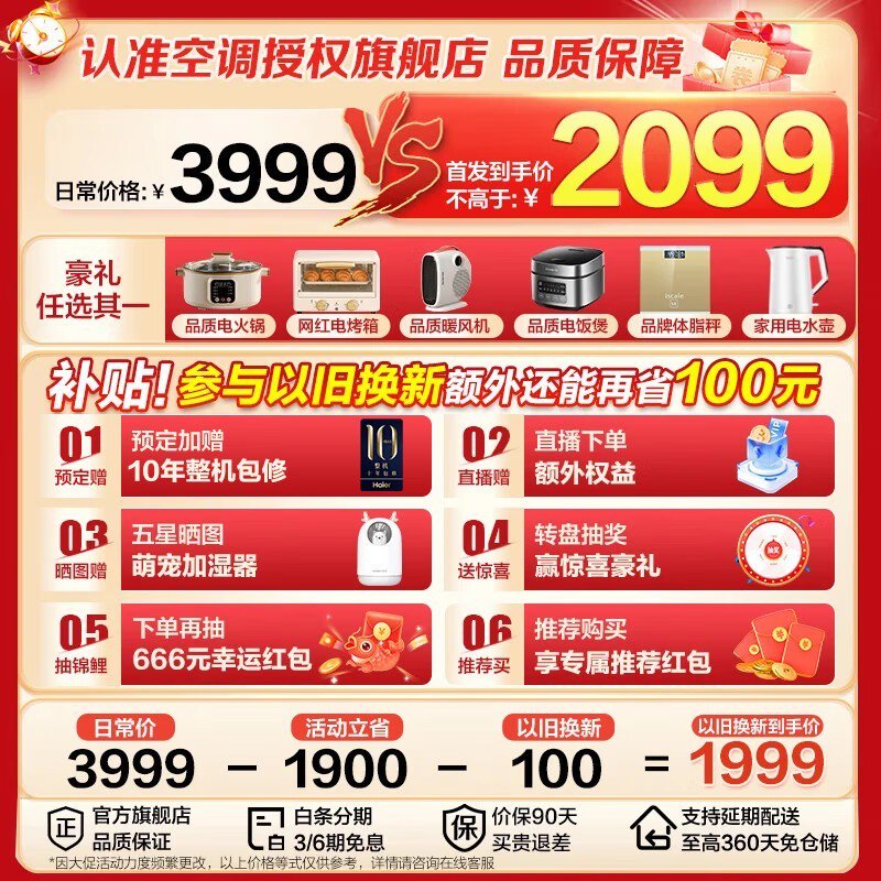 海尔1匹新一级能效空调到手价1473元