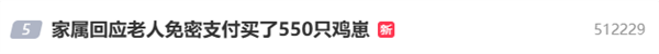 快科技4月21日消息,今日,词条#家属回应老人免密支付买了550只鸡崽#登上微博热搜,引起网友热议。
