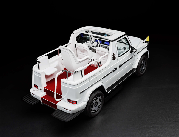 据悉,这款车是全球唯一一台纯电动大 G “Popemobile G580”,是梅赛德斯 - 奔驰为庆祝教皇2025年金禧庆典而其特别定制的车型。