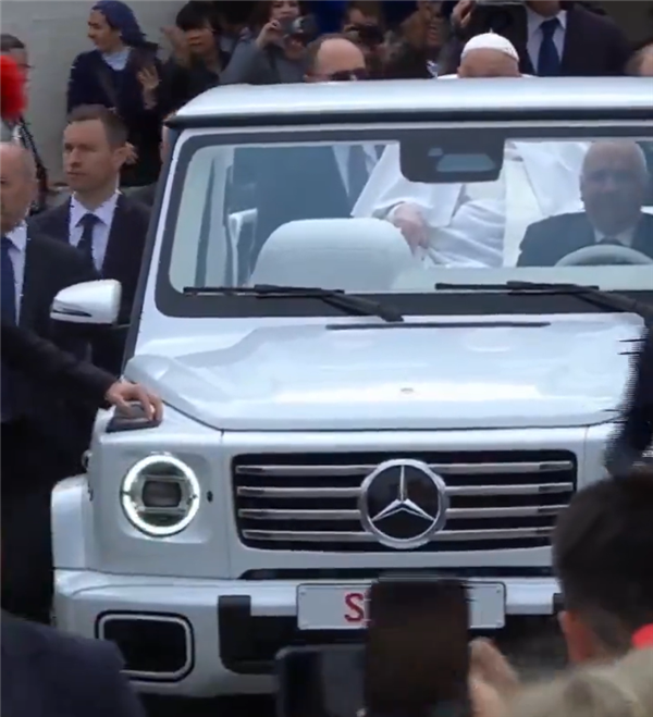 在复活节庆祝活动现场,方济乘坐一台定制版的奔驰G级纯电越野车公开露面。