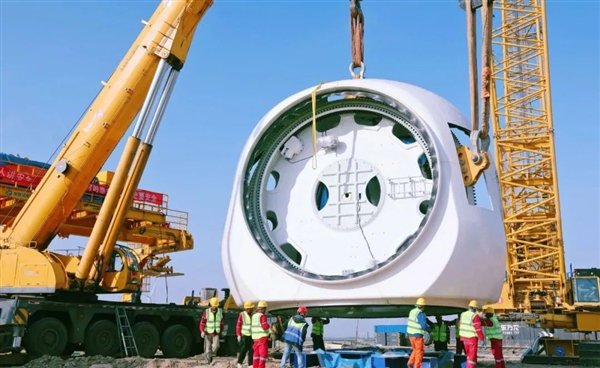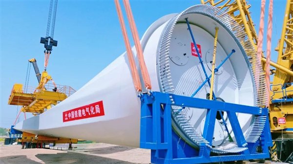 快科技4月21日消息,中国铁建电气化局官宣,经过集团一公司参建者们3个多小时的安装、调试,天润大丰风电项目最后一支叶片在155米高空完美“转体”与轮毂精准对接,标志着我国自主研发生产的首台16.2兆瓦陆上单机容量最大发电机组顺利吊装完成。
