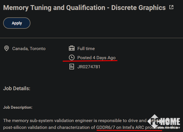 除此之外,英特尔近日发布了一份招聘需求,招募“内存调试和认证 ”职位,而在职位描述当中提到了GDDR6/7显存对于锐炫系列独立显卡的支持需求,这意味着后续的英特尔锐炫独显产品有望升级到GDDR7显存。如果采用速度更快的GDDR7显存,预计比起现在的独显产品有望带来47%以上的显存带宽提升。