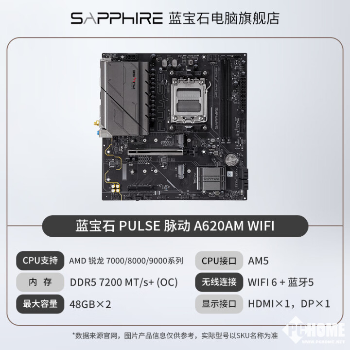 蓝宝石推出PULSE脉动A620AM WIFI主板,售价699元。