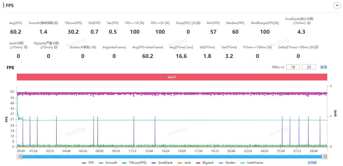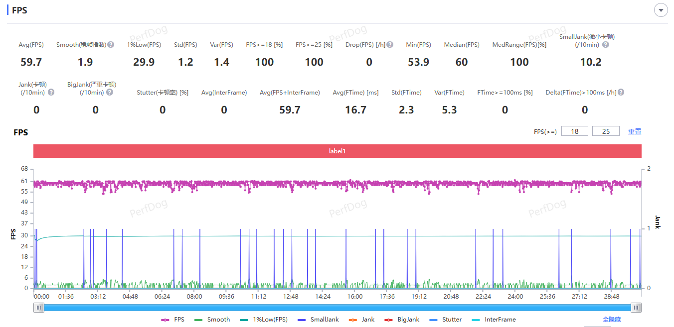 在《绝区零》的游戏跑图测试中,测试画质设置为全高+60帧,测试场景为光映广场跑图30分钟。经过实测,vivo X200s的平均帧率为59.7帧。