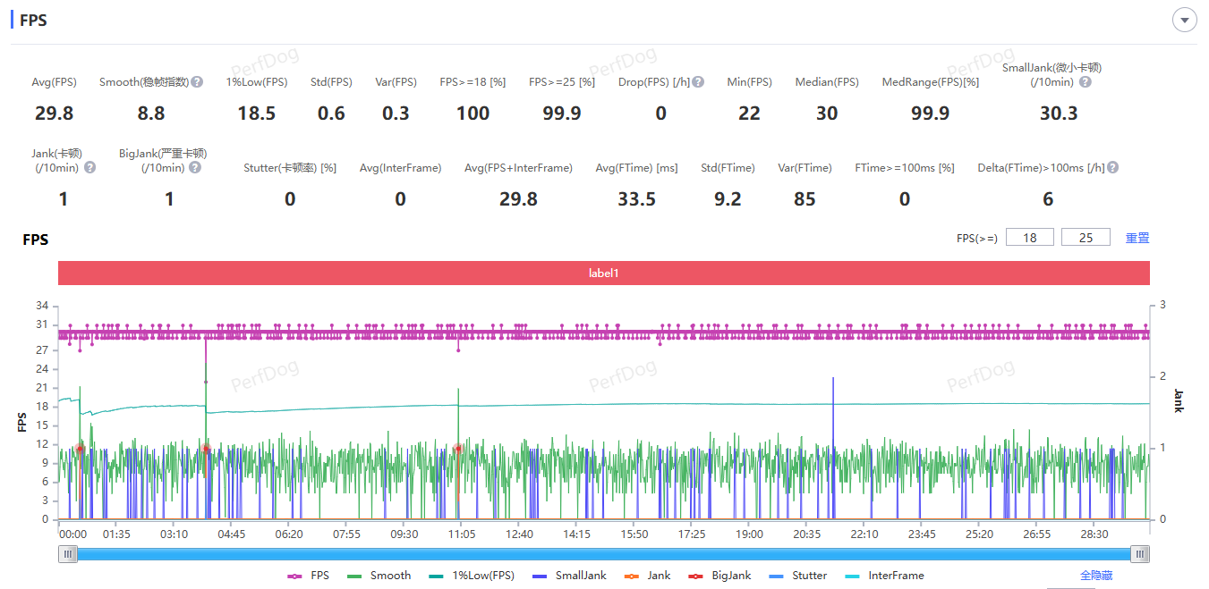 在《无限暖暖》的游戏跑图测试中,测试画质设置为极致画质(无限暖暖满帧为30帧),测试场景为花愿镇跑图30分钟。经过实测,vivo X200s的平均帧率为29.8帧。