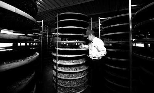 ③ 汪东风在森泉茶叶厂指导新茶生产。
