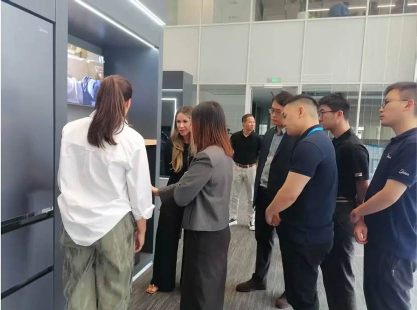 代表团先后考察了美的总部展厅、智能产品展厅,深入了解美的集团的战略方向、发展情况、业务板块、前沿技术布局以及全球产业链布局。重点讨论了美的利用领先的智能AI,高能效,纯平嵌入等技术和工艺,专为巴西及其他南美市场定制的AI变频空调,纯平嵌冰箱,纯平嵌洗护衣机,厨房套系家电等绿色智能产品组合。