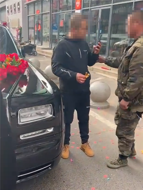 网友爆料,近日在吉林,一男子拦婚车讨要“喜钱”,不料掰断劳斯莱斯库里南“小金人”车标。