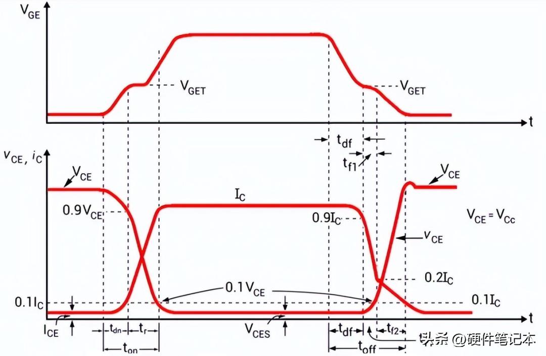 关断时间( t off):由三个部分组成,延迟时间 (t df )、初始下降时间 (t f1 ) 和最终下降时间 (t f2 )。