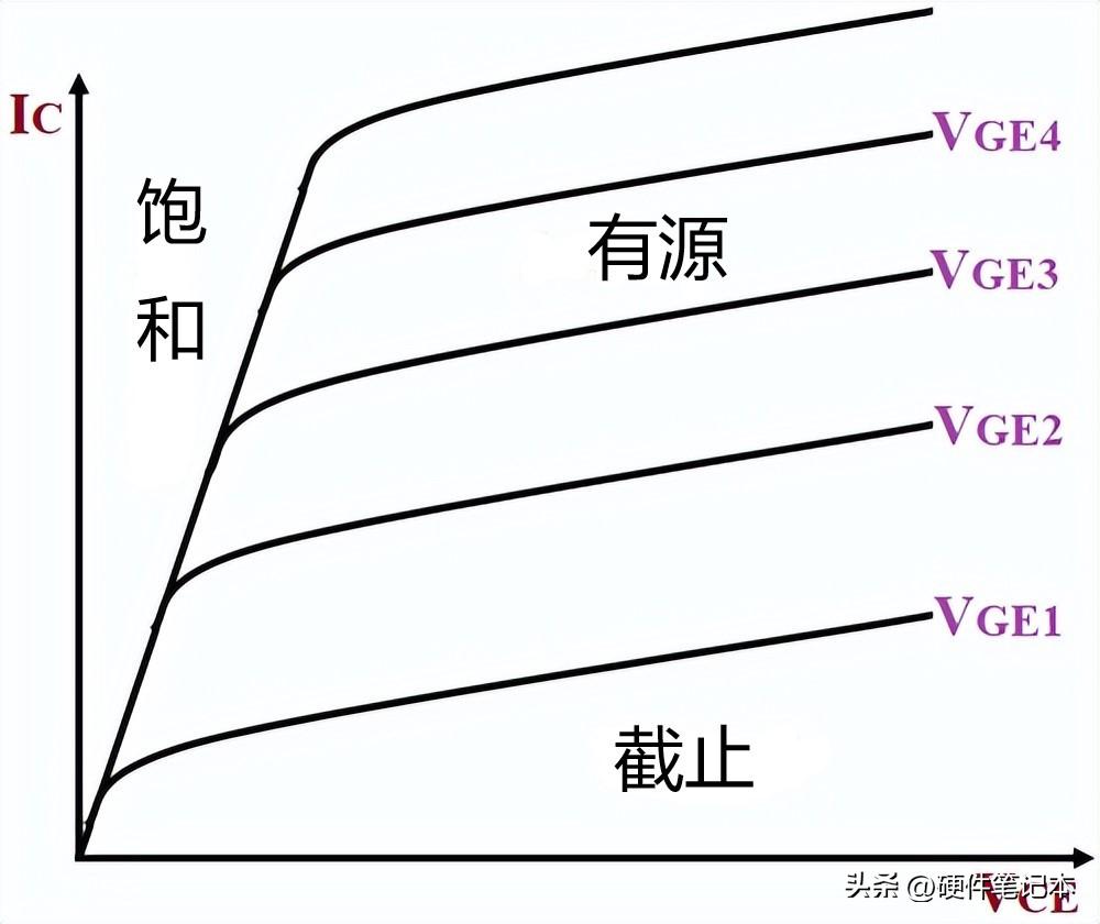 第三阶段:当 VGE增加到超过阈值电压时,IGBT 进入有源区,电流开始流过 IGBT 。如上图所示,电流将随着电压 VGE的增加而增加。